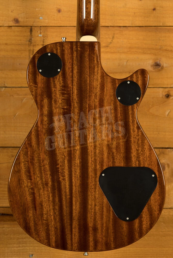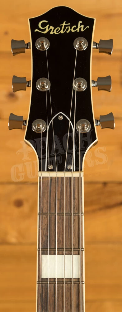 Introducing the extraordinary G6228 Players Edition Jet BT with V-Stoptail! Get ready to experience the ultimate combination of power, fidelity, and complete tonal control. With the simple stomp of a switch, this guitar unleashes a world of possibilities, delivering powerful overdrive and shimmering cleans like never before. Crafted with precision and expertise, the chambered mahogany body with a maple top offers a thick and acoustically rich sound. Its balanced mid-range and extended bandwidth provide a harmonically rich experience that will captivate your ears. Fuelling this sonic powerhouse are the all-new Gretsch Broad’Tron BT65 pickups, designed by the legendary Tim Shaw. These pickups capture every nuance of your playing, delivering powerful mids, extended lows, and a clear yet smooth high end. The result is an unparalleled blend of wall-shaking power and full-spectrum fidelity. With the Players Edition premium feature set, you’ll have total control of your tone, ensuring maximum comfort, control, and performance. Don’t settle for anything less than extraordinary – unleash your true potential with the G6228 Players Edition Jet BT with V-Stoptail.