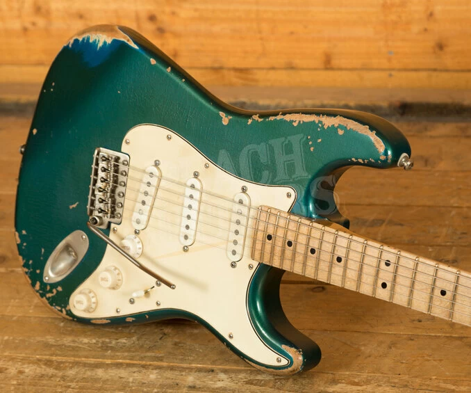 Aesthetically, all of the Hemstock Guitars we’ve seen are like a work of art, with relic work by Scott Cameron, who is quickly becoming regarded as a master at his craft, each finish is unique and treated as an individual, no cookie cutter templates on show here. As well as being tastefully aged, the body also features a contoured heel and recessed neck plate, a small but well thought out touch that takes the feel of these guitars to the next level. Finally the 6-screw Gotoh 510 bridge with compensated saddles allows for much better intonation over more traditional designs and a set of Schaller strap locks wraps up what is a great guitar.