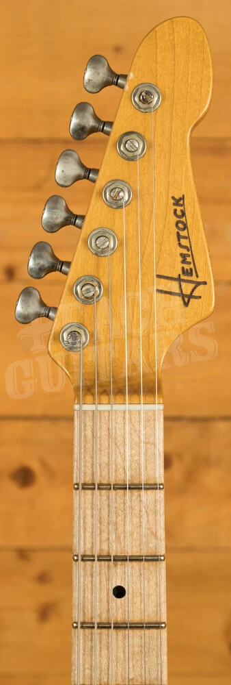 Please Note: This guitar is Pre-Owned but is in Very Good condition. Since this guitar was made, lacquer checking has occurred to the gloss finish on the headstock which we feel just adds to the vintage relic aesthetics of this guitar, although we would be remiss if we didn’t mention that there is a small chip in the finish of headstock at the tip. Not only is this the very guitar that is proudly displayed on the Hemstock website but it is the first serial ever made of the Classic No.3! Get your hands on this piece of Hemstock history today – buy online or book an appointment to try out in-store at Peach Guitars!