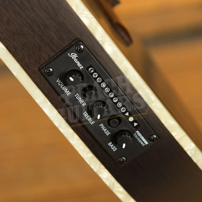 Equipped with a Fishman Sonicore under-saddle pickup and an Ibanez AEQ210TF preamp with an onboard tuner, the TOD10N ensures your live performances are nothing short of extraordinary. The pickup captures every nuance of your playing, faithfully translating your dynamics to any amplification system. The preamp offers precise control over your sound, with a treble knob, bass knob, phase button, and easy-to-read digital tuner.