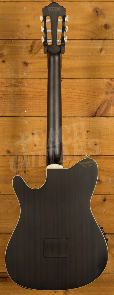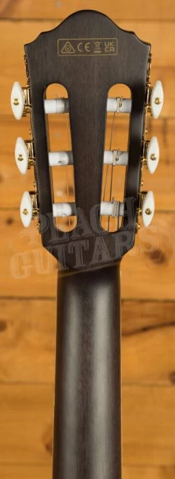 The C-shaped nyatoh neck with a slotted headstock and the walnut fretboard with a 400mm radius provide a playing experience that is as comfortable as it is exhilarating. The 46mm wide bone nut and 22 frets make complex chords and solos a breeze, while the fan bracing, commonly found in classical guitars, enhances the warmth and natural sound of the nylon strings.