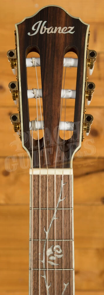 The TOD10N’s design is a harmonious blend of innovation and artistry. The “Tree of Death” thorned vine and rose inlays on the walnut fretboard pay homage to Ibanez’s iconic “Tree of Life” design while adding a unique twist. The oval sound port on the top side near the upper horn and the side sound port on the body allow you to immerse yourself in the pure acoustic essence of the guitar, connecting you intimately with your music.