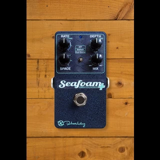 Seafoam Mode: You guessed it… the all new Seafoam Plus Chorus – lush, wide, and with a very musical vibrato. It gives you the lush sounds and tone of a vintage BBD analogue chorus unit. This is where you’ll find a typical chorus feature. The Seafoam Mode of the pedal has an LFO, the regularly cycling part you hear in most every other chorus unit. It provides a classic tone that you expect and which has become part of many classic tunes. Set the rate for slow and the depth for wide, and enjoy a really spacious sounding chorus. Roll the Mix Control all of the way up for Vibrato. With the Space control acting as a Tone Control in this mode, you can go from bright to vintage warmth, dialling in the perfect chorus.
