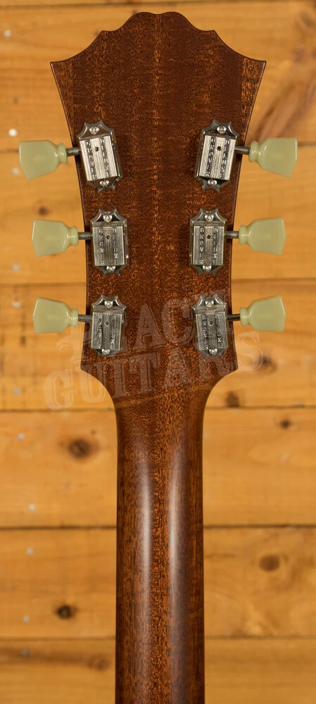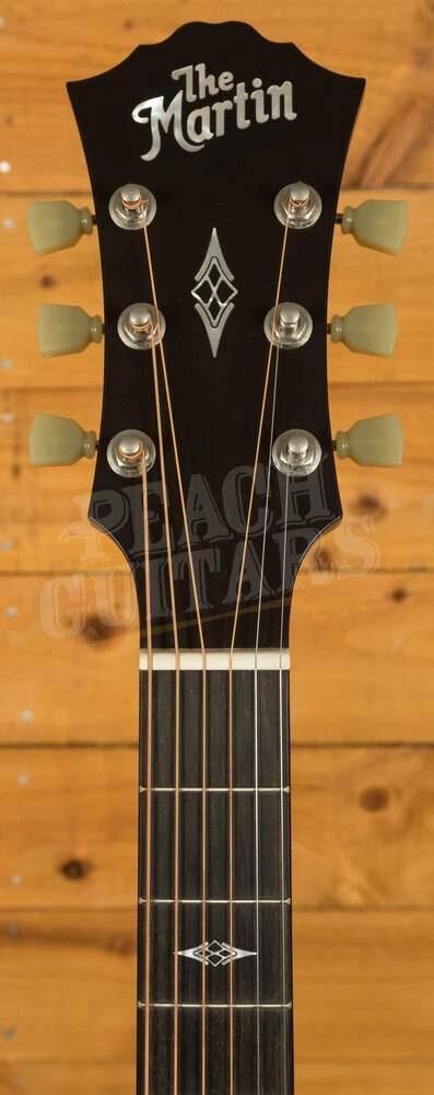 The Select Mahogany neck and Ebony fingerboard combine for a smooth, comfortable and familiar feel, with gorgeous mother of pearl Skeleton Diamond inlays it looks a million dollars. The vintage Martin Archtop headstock further complements this guitars flawless design.