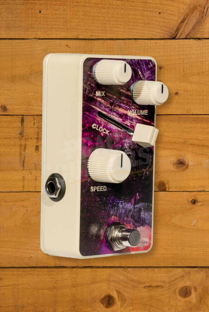Actively contending with the existential construct of time, Old Blood Noise Endeavors presents the BL-44 Reverse Variable Clock effector, a reverse effect that allows the user to change the clock speed of the entire sonic system. Through a simple control set, sounds ranging anywhere from lively harmony to faded memory can be achieved. The BL-44 is a true reverse effect, always reading backward what the player has most recently played, but with added depth and harmony from the interaction of the Clock slider and Speed knob. It aims for an immediate and tactile experience that encourages the player to keep their thumb on the slider and experiment.
