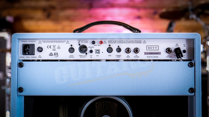 This Revv D25 combo features an awesome custom design specd by the Peach Guitars team. The Baby Blue tolex looks incredible paired up with this grill cloth! Were massive fans of it and were sure you will be too!