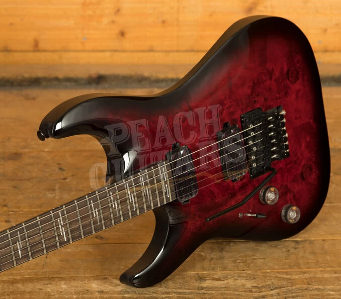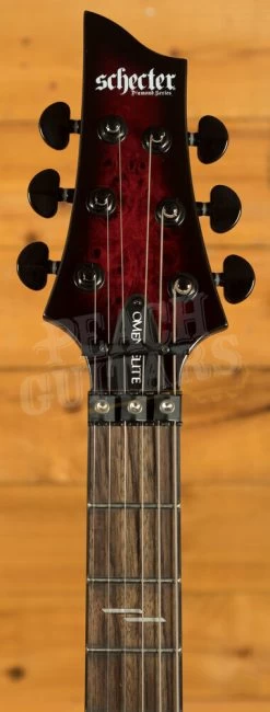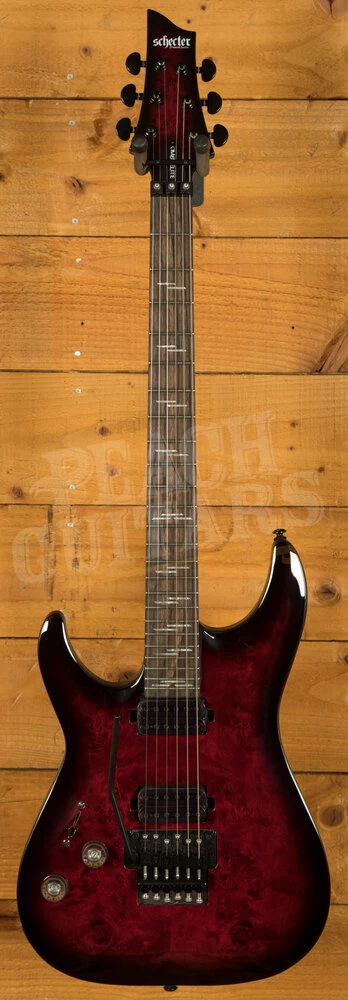 The Schecter Omen Elite-6 FR Black Cherry Burst is a tonal monster, with a Mahogany body, the Omen Elite-6 has a sweet arched top and a Black Cherry Burst finish. The Bolt on construction gives ultimate stability and easy access to the upper frets, perfect for reaching those high notes.