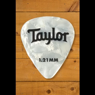 Taylor Celluloid Picks are available in Classic Shell, White Pearl and Abalone colour patterns in the classic 351 shape. Perfect for players who love the traditional, familiar tone and feel of a classic pick, they are available in .46mm, .71mm, .96mm and 1.21mm gauge sizes. Made in the USA.