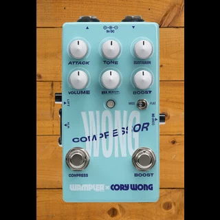 The Cory Wong compressor features two soft footswitches that each operate a separate function of the pedal. The compressor side offers complete control over Volume, Sustain, Attack, and Blend as well as Brian WamplerÂ’s signature Tone control which can be dialed in to add sparkle and chime to your guitarÂ’s tone. The boost side features a singular rotary boost control which allows you to adjust the amount of boost activated. There is also a super helpful profile switch which sets the mode of the boost circuit.
